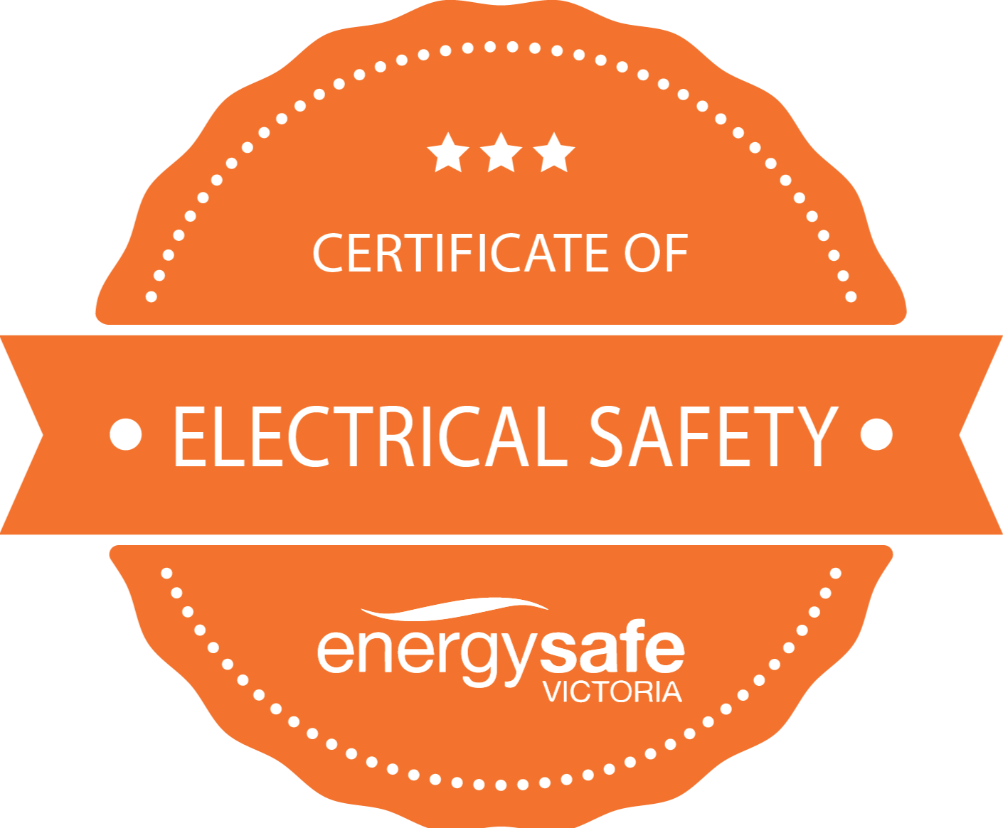 Certificate of electrical safety issued on completion of every job no matter how small - as required by Energy Safe Victoria.